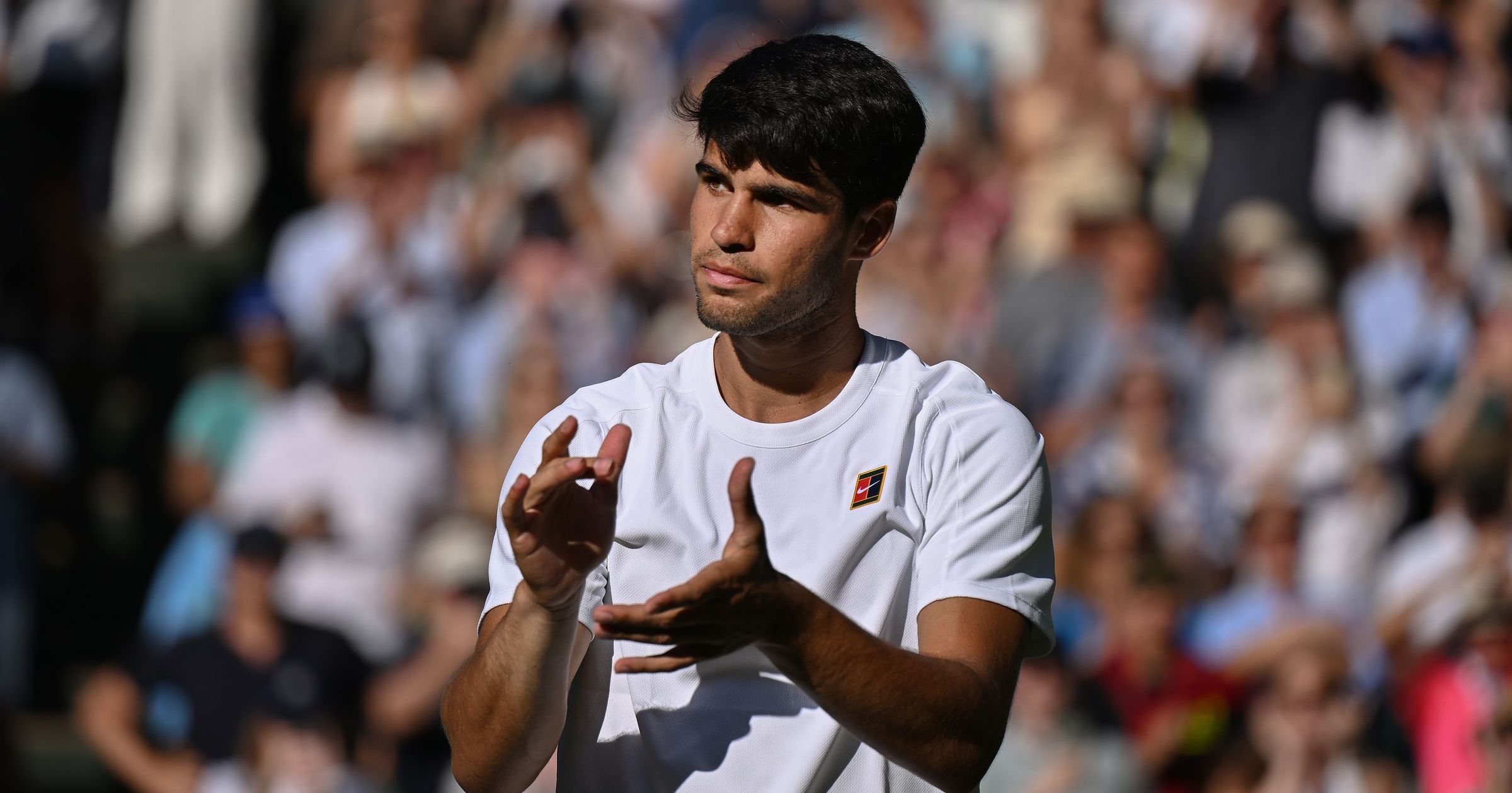 Sinner quickly turned around to see what was going on and the fan quickly pulled his hands back and looked embarrassed he had been caught.