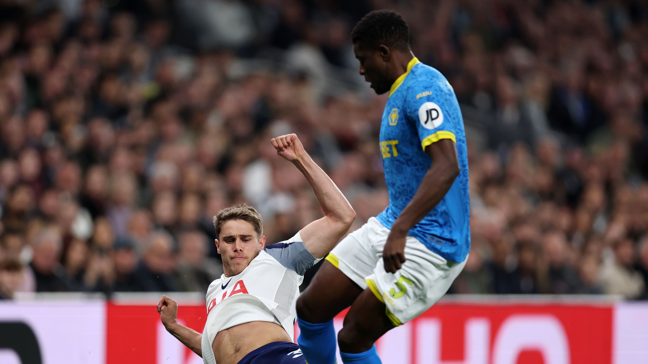 The hosts bring the ball forward with speed, as Udogie wins a corner off Doherty.
