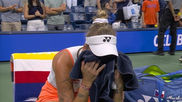 Raducanu then spotted the same individual in the crowd during her match against Karolina Muchova, which resulted in Raducanu breaking down in tears and hiding behind the umpire’s chair before he was kicked out.