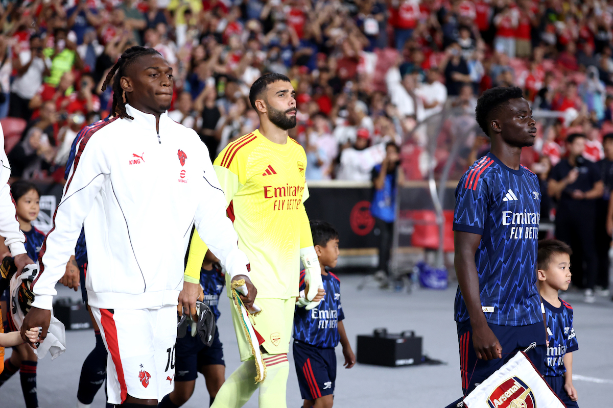 In front of a vocal Milan presence inside the Singapore National Stadium, the game quickly settled into a rhythm whereby Arsenal saw plenty of the ball and the Rossoneri settled into a shape to try and frustrate, while looking for their moments to break. Early efforts from Leao and Declan Rice were blocked and went over.